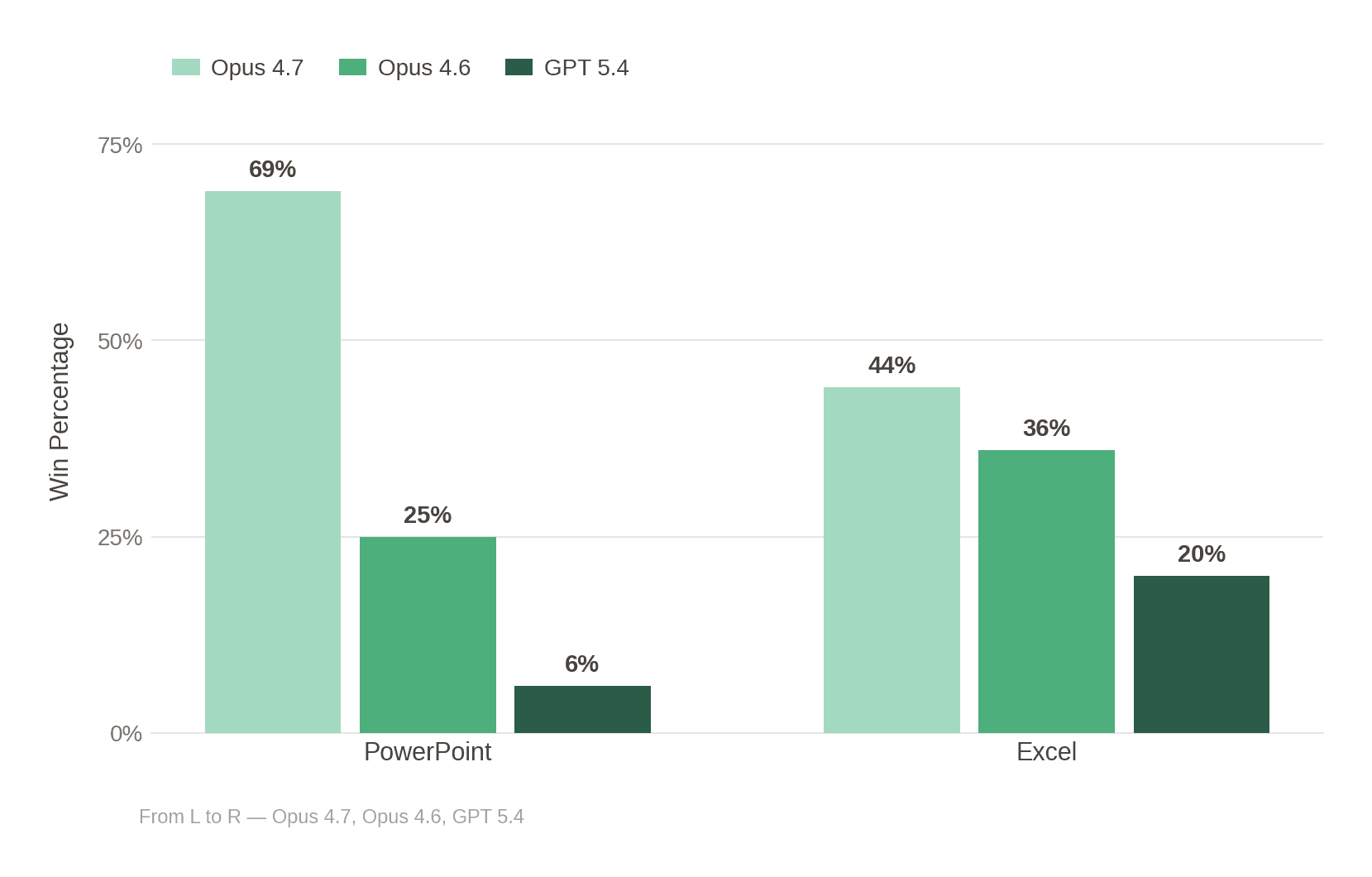 In our most recent benchmarks, we focused specifically on artifact generation in PowerPoint and Excel, reflecting the primary formats used in real-world financial analysis and reporting.